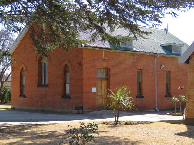 The Wesley Hall was built in 1906 and the cornerstone was laid by Mrs. Tom James on 17 January 1906. She was the eldest daughter of James Putterill. Her husband was a true supporter of the church and was for many years the Sheriff and Mayor of the town.